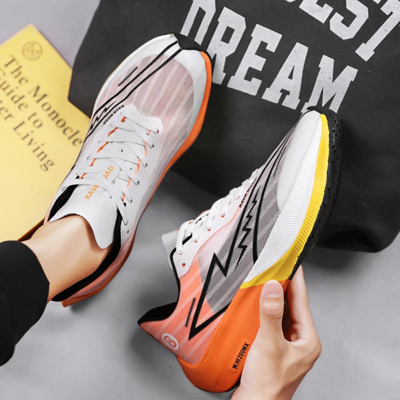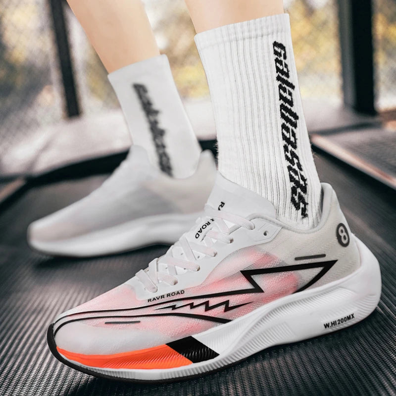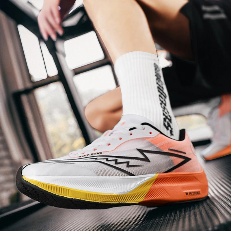 O CarbonPulse foi desenvolvido para atletas que exigem máximo desempenho e conforto. Com sua placa de carbono de palma completa, ele proporciona retorno de energia superior, impulsionando cada passada. A palmilha em EVA garante amortecimento eficiente, enquanto o cabedal em tecido respirável mantém seus pés frescos durante toda a corrida.